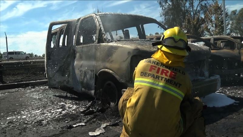 เจ้าหน้าที่ได้รับรายงานเมื่อบ่ายวันจันทร์ว่าไฟไหม้บริเวณทุ่งหญ้าริมทางหลวงของรัฐหมายเลข 99 ในใจกลางเมืองรัฐแคลิฟอร์เนีย ซึ่งอาจเป็นเพราะโซ่เหล็กที่ลากติดพื้นจากรถบรรทุกขนาดใหญ่ทำให้เกิดประกายไฟ หรืออาจมีวัตถุที่ทำให้เกิดไฟไหม้ลามทุ่งหญ้าแห้ง สำนักงานอัคคีภัยแถลงว่าไฟไหม้ลามทั่วลานจอดรถของโชว์รูมคาร์แมกซ์ ทำลายรถยนต์ 26 คัน และเสียหาย 60 คัน หนังสือพิมพ์เบเกอร์สฟิลด์แคลิฟอร์เนียรายงานว่า มูลค่าความเสียหายโดยรวมอยู่ที่ 2.1 ล้านดอลลาร์สหรัฐ (65 ล้านบาท) นักดับเพลิงเข้าดับไฟไหม้ที่เผาผลาญต้นไม้และทุ่งหญ้าราว 50 ไร่ พนักงานโชว์รูมรถได้รับการอพยพออกจากพื้นที่และไม่มีรายงานผู้บาดเจ็บ .- สำนักข่าวไทย