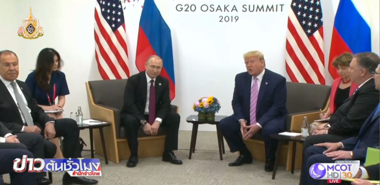 ญี่ปุ่น 28 มิ.ย. – ประธานาธิบดีโดนัลด์ ทรัมป์ ผู้นำสหรัฐ พบหารือกับประธานาธิบดีวลาดิมีร์ ปูติน ผู้นำรัสเซีย นอกรอบการประชุมสุดยอดกลุ่มประเทศเศรษฐกิจขนาดใหญ่ (G20) ซึ่งจัดขึ้นที่นครโอซากา ของญี่ปุ่น ระหว่างการหารือ ผู้นำสหรัฐหยิบยกประเด็นทางด้านการค้าและการลดอาวุธขึ้นมาหารือกับผู้นำรัสเซีย