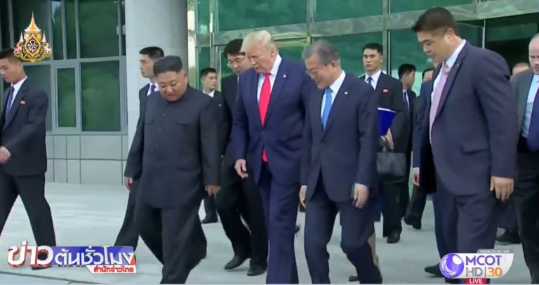 ประธานาธิบดีโดนัลด์ ทรัมป์ ผู้นำสหรัฐฯ เดินทางออกจากเกาหลีใต้ หลังสร้างประวัติศาสตร์เป็นประธานาธิบดีสหรัฐฯ ที่อยู่ในตำแหน่งคนแรกที่ก้าวข้ามเขตปลอดทหาร หรือ “ดีเอ็มซี” เข้าไปยังดินแดนของเกาหลีเหนือ และได้จับมือกับนายคิม จอง อึน ผู้นำเกาหลีเหนือ ซึ่งเป็นการจุดประกายความหวังการเจรจานิวเคลียร์ระหว่างสหรัฐฯ และเกาหลีเหนือ อาจเกิดอีกครั้ง หลังหยุดชะงักไปตั้งแต่เมื่อเดือนกุมภาพันธ์