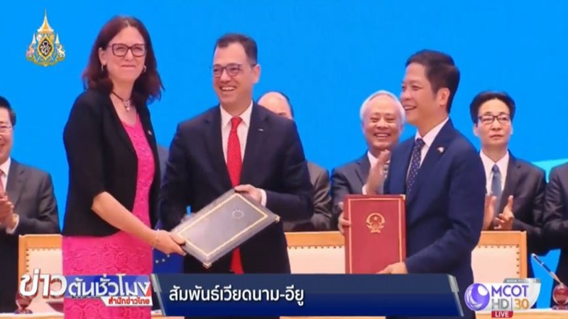 เวียดนาม 3 ก.ค.-เวียดนามร่วมลงนามข้อตกลงการค้าเสรีเวียดนาม-อียู หรือ EVFTA การบรรลุข้อตกลงดังกล่าวนับเป็นก้าวสำคัญของความสัมพันธ์ระหว่างเวียดนามกับสหภาพยุโรป หรืออียู และเวียดนามนับเป็นชาติที่ 2 ในอาเซียน และเป็นประเทศกำลังพัฒนาประเทศแรกในภูมิภาคนี้ ที่ร่วมลงนามในข้อตกลงดังกล่าว