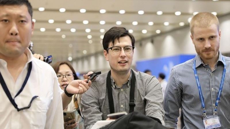 ซิดนีย์ 4 ก.ค.- นักศึกษาชายชาวออสเตรเลียที่มีข่าวว่าถูกกักตัวในเกาหลีเหนือไปปรากฏตัวที่ท่าอากาศยานกรุงปักกิ่งของจีนในวันนี้ โดยเผยว่าสภาพจิตใจดีหลังได้รับการปล่อยตัว คาดว่าจะเดินทางต่อไปยังญี่ปุ่นในวันนี้เพื่อพบกับภรรยาชาวญี่ปุ่น