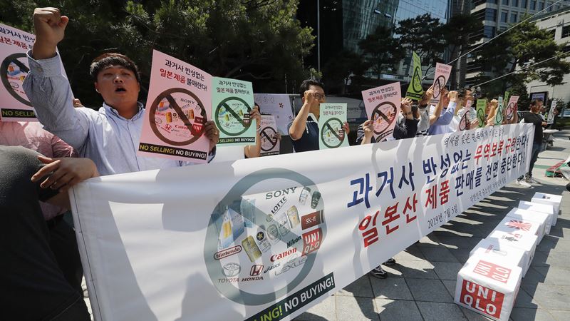 สมาชิกกลุ่ม Movement for One Korea ที่จัดการประท้วงหน้าบริษัทตัวแทนจำหน่ายยานยนต์ญี่ปุ่นและร้านค้าปลีกในกรุงโซลกล่าวว่า การคว่ำบาตรเป็นวิธีที่ประชาชนจะแสดงออกถึงความไม่พอใจได้เร็วที่สุด ขณะนี้ชาวเกาหลีใต้จำนวนมากกำลังไม่พอใจทัศนคติของรัฐบาลญี่ปุ่น นักแสดงเกาหลีใต้คนหนึ่งถึงกับต้องลบภาพเที่ยวญี่ปุ่นออกจากโซเชียลเมื่อวานนี้ หลังจากถูกชาวเน็ตวิพากษ์วิจารณ์ ขณะที่หุ้นบริษัทท่องเที่ยวที่ซื้อขายในตลาดหุ้นเกาหลีใต้ร่วงระนาวในสัปดาห์นี้ เพราะตลาดคาดว่าจะได้รับผลกระทบหนักจากกระแสคว่ำบาตรญี่ปุ่น