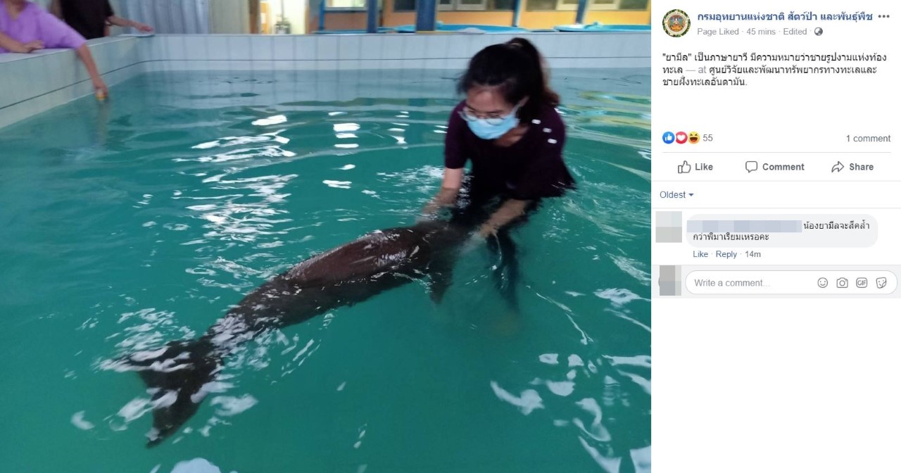 On July 7, a charity cycling event will be held from the Kantang train station to Koh Libong, where the six-year-old Marium is receiving daily care by veterinarians and volunteers in the waters.