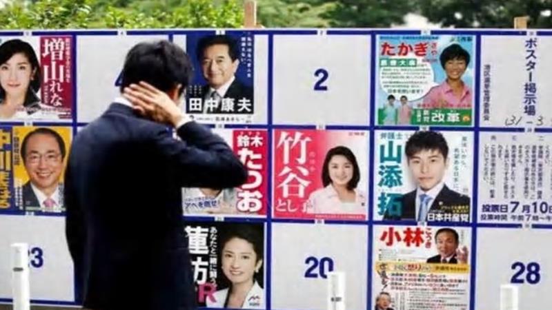 ญี่ปุ่นเลือกตั้ง ส.ว.ครึ่งหนึ่งทุก 3 ปี เพื่อดำรงตำแหน่งวาระ 6 ปี พรรคเสรีประชาธิปไตย หรือแอลดีพี (LDP) ของนายกรัฐมนตรีอาเบะชนะเลือกตั้งถล่มทลายในปี 2556 แต่ได้ที่นั่งลดลงมากในปี 2559 ปีที่แล้วมีการปฏิรูปทำให้จำนวน ส.ว.เพิ่มขึ้น 3 ที่นั่ง เป็น 245 ที่นั่ง สำนักข่าวเกียวโดสำรวจความเห็นชาวญี่ปุ่นเมื่อวันพฤหัสบดีและวันศุกร์พบว่า พรรคแอลดีพีและพรรคโคเมอิโตะที่เป็นพรรคร่วมรัฐบาลจะได้ ส.ว.ไม่ต่ำกว่า 63 ที่นั่ง และอาจมากถึง 77 ที่นั่ง จากที่จะเลือกทั้งหมด 124 ที่นั่ง ขณะที่ผลสำรวจของหนังสือพิมพ์อาซาฮีและซันเคอิก็ได้ผลทำนองเดียวกัน อย่างไรก็ดี ผู้มีสิทธิเลือกตั้งจำนวนมากเผยว่า ยังไม่ตัดสินใจว่าจะลงคะแนนให้ใคร ผลการเลือกตั้งจึงอาจเปลี่ยนไปได้