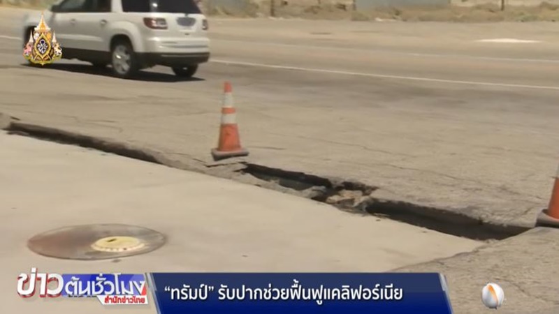สหรัฐ 7 ก.ค.-ประธานาธิบดีโดนัลด์ ทรัมป์ รับปากจะให้ความช่วยเหลือแก่รัฐแคลิฟอร์เนีย หลังจากต้องเผชิญกับแผ่นดินไหวรุนแรง 2 ครั้งซ้อน