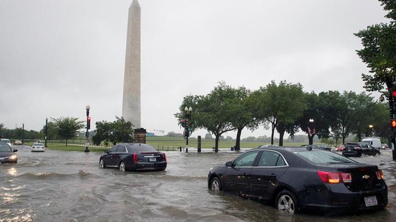 สำนักอุตุนิยมวิทยาแห่งชาติสหรัฐประกาศเตือนภัยน้ำท่วมฉับพลันอันเป็นผลจากพายุกระหน่ำ น้ำท่วมขังทำให้ต้องปิดถนนสายหลักหลายสาย ท่าอากาศยานและการเดินรถไฟถูกกระทบ เที่ยวบินและตารางเดินรถไฟล่าช้าจากกำหนด ท่าอากาศยานแห่งชาติเรแกนมีน้ำฝนมากถึง 3.3 นิ้ว ภายในเวลาเพียงหนึ่งชั่วโมง ภาพที่ออกอากาศตามสถานีโทรทัศน์และแพร่ภาพตามสื่อสังคมออนไลน์เห็นยวดยานจมน้ำใกล้สถานที่สำคัญของกรุงวอชิงตัน เช่น อนุสาวรีย์วอชิงตัน เจ้าของรถหลายคนต้องหนีขึ้นมานั่งบนหลังคารถ นอกจากนี้ยังมีคลิปน้ำรั่วลงมาตามรูบนหลังคาของสถานีรถไฟใต้ดินวอชิงตันด้วย