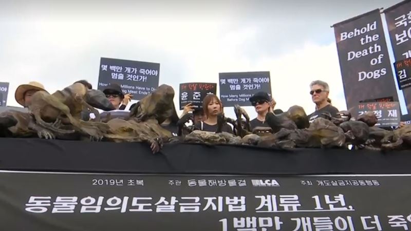 นักแสดงชาวอเมริกันกล่าวว่า จะต้องยุติความโหดร้ายเช่นนี้ และจะต้องช่วยสัตว์ที่กำลังได้รับความทุกข์ทรมาน นักรณรงค์ต่อต้านการกินเนื้อสุนัขยังได้ชูป้ายมีข้อความว่า ก่อนที่เทศกาลกินเนื้อสุนัขจะสิ้นสุดจะต้องมีสุนัขตายเป็นจำนวนเท่าใด พร้อมกันนี้ยังได้นำซากสุนัขจำลองมาวางไว้บนโต๊ะ ขณะเดียวกัน มีรายงานว่า ห่างออกไปจากจุดชุมนุมราว 10 เมตร เป็นเกษตรกรที่เลี้ยงสุนัขส่งขายตามร้านอาหาร การชุมนุมต่อต้านการรับประทานเนื้อสุนัขมักมีขึ้นเป็นประจำในช่วง 3 วันที่ร้อนที่สุดของเกาหลีใต้