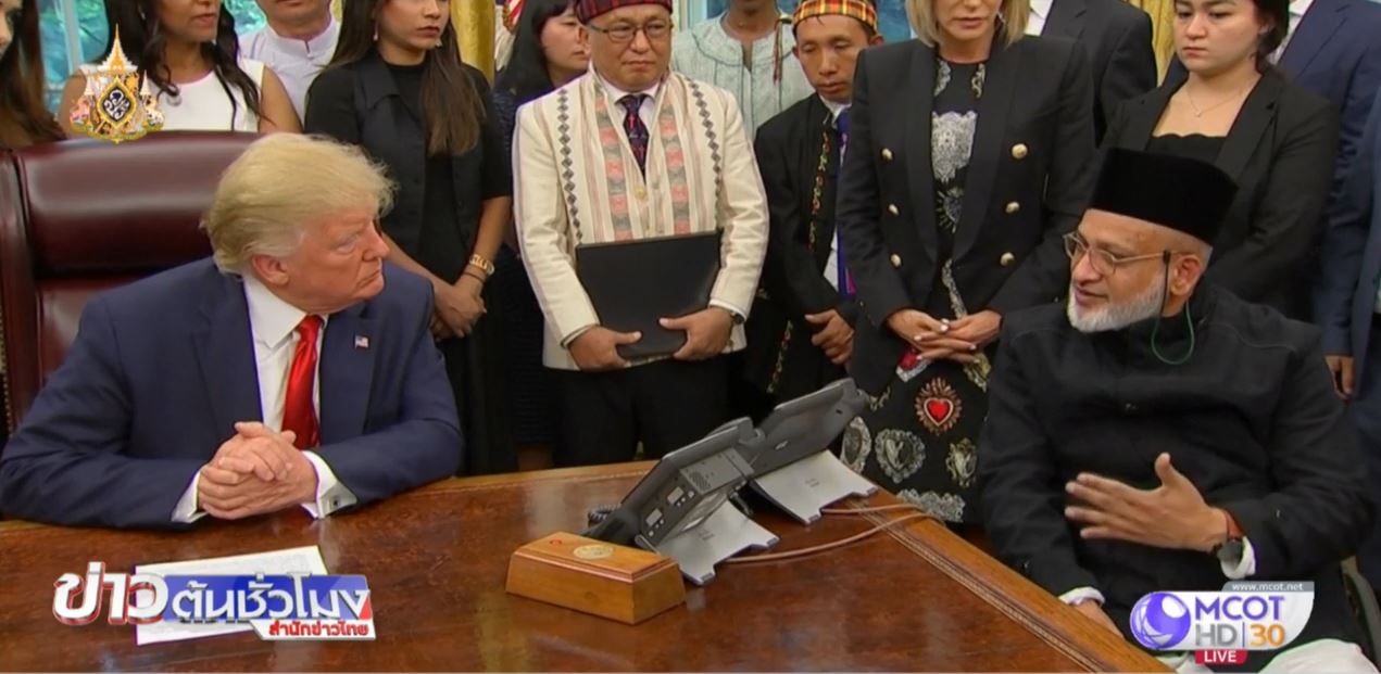 อาห์เหม็ดเป็นหนึ่งในกลุ่มผู้รอดชีวิตจากการก่อเหตุรุนแรงด้านศาสนาจาก 17 ประเทศ รวมทั้ง จีน ตุรกี เกาหลีเหนือ อิหร่าน และเมียนมา ที่ได้เข้าพบผู้นำสหรัฐที่ห้องทำงานรูปไข่ ภายในทำเนียบขาว . – สำนักข่าวไทย