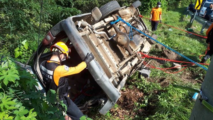 เกาหลีใต้ 22 ก.ค.-รถตู้โดยสารประสบอุบัติเหตุเสียหลักพลิกคว่ำไถลลงจากเนินเขาในเกาหลีใต้ แรงงานไทยตาย 2