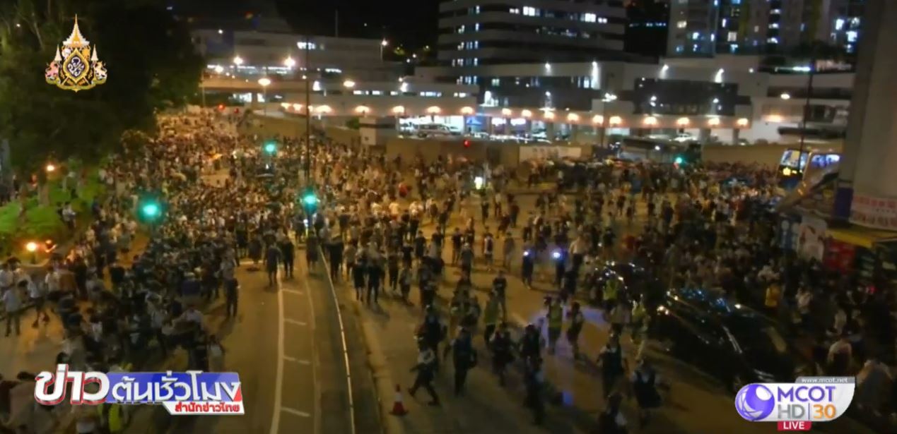 การตั้งข้อหาผู้ประท้วงครั้งนี้นับเป็นครั้งแรก หลังจากมีการชุมนุมใหญ่มาตั้งแต่ต้นเดือนที่แล้ว เพื่อต่อต้านการออกกฎหมายส่งตัวผู้ร้ายข้ามแดนไปดำเนินคดีในจีนแผ่นดินใหญ่. – สำนักข่าวไทย