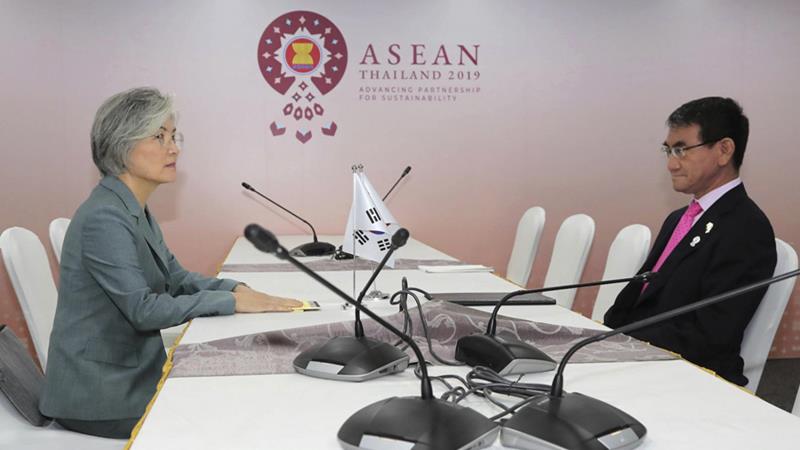 เจ้าหน้าที่เกาหลีใต้ที่ขอสงวนนามเผยกับสื่อนอกรอบการประชุมรัฐมนตรีต่างประเทศอาเซียนกับประเทศคู่เจรจาและการประชุมที่เกี่ยวข้องที่กรุงเทพฯ ว่า เกาหลีใต้อาจพิจารณายกเลิกข้อตกลงความมั่นคงทั่วไปเรื่องข้อมูลทางทหาร (GSOMIA) เพื่อตอบโต้ญี่ปุ่น โดยได้มีการหยิบยกเรื่องนี้ขึ้นระหว่างการหารือรัฐมนตรีต่างประเทศไตรภาคีเกาหลีใต้ ญี่ปุ่นและสหรัฐเมื่อวานนี้ ข้อตกลงนี้เปิดทางให้มีการแบ่งปันข่าวกรองทางทหารระหว่างสามประเทศ มีความสำคัญทั้งต่อเกาหลีใต้และญี่ปุ่นในการรับมือกับภัยนิวเคลียร์และขีปนาวุธของเกาหลีเหนือ โดยจะมีการต่ออายุโดยอัตโนมัติทุกวันที่ 24 สิงหาคมของทุกปี