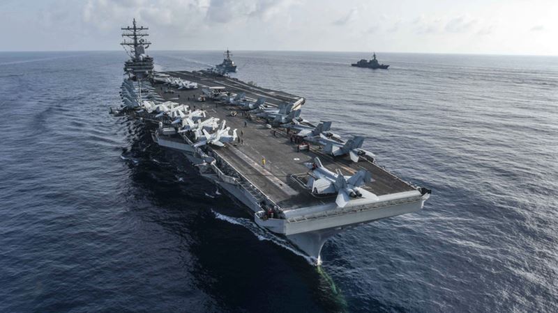 ทะเลจีนใต้ 7 ส.ค.- เรือบรรทุกเครื่องบินยูเอสเอสโรนัลด์เรแกนของสหรัฐ พร้อมกองเรือติดอาวุธแล่นผ่านน่านน้ำอันเป็นพื้นที่พิพาทในทะเลจีนใต้เมื่อวานนี้ ท่ามกลางภาวะตึงเครียดระหว่างจีน เวียดนาม มาเลเซีย และฟิลิปปินส์