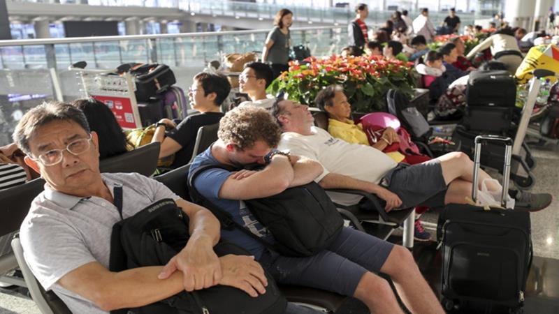 รายงานระบุว่า เมื่อเวลา 08.00 น.วันนี้ตามเวลาฮ่องกง เร็วกว่าไทย 1 ชั่วโมง ท่าอากาศยานนานาชาติฮ่องกงได้ประกาศยกเลิกเที่ยวบินขาออก 160 เที่ยว และขาเข้า 150 เที่ยวที่กำหนดออกเดินทางระหว่างเที่ยงคืนวันจันทร์จนถึง 23.55 น.วันนี้ตามเวลาฮ่องกง ขณะที่เคาน์เตอร์เช็คอินในอาคารผู้โดยสารขาออกมีแถวผู้โดยสารยาวเหยียด สายการบินต่าง ๆ พยายามจัดการกับผู้โดยสารที่ตกค้างจากการยกเลิกเที่ยวบินเมื่อวานนี้ หลายคนต้องนอนค้างคืนที่ท่าอากาศยาน ส่วนอาคารผู้โดยสารขาเข้าบรรยากาศเงียบเหงา ผู้ประท้วงบางส่วนยังปักหลักอยู่พร้อมกับป้ายประท้วง การท่าอากาศยานฮ่องกงแจ้งว่า ได้จัดตารางบินใหม่ในวันนี้ ซึ่งจะกระทบต่อตารางการบินทั้งหมด จึงขอให้ผู้โดยสารตรวจสอบข้อมูลเที่ยวบินล่าสุดทางแอปพลิเคชั่นและยืนยันเที่ยวบินก่อนเดินทางมายังท่าอากาศยาน