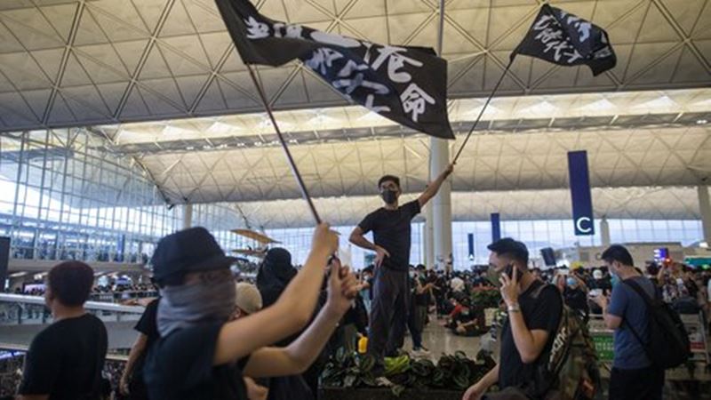 ช่วงเช้าวันนี้เหลือผู้ประท้วงจำนวนเพียงหยิบมือที่ค้างคืนต่อเนื่องมาจากเมื่อวาน แต่ในช่วงสายเริ่มมีคนมาสมทบมากขึ้นเรื่อย ๆ ตามที่มีเสียงเรียกร้องให้จัดการชุมนุมครั้งใหม่ ผู้ประท้วงสวมเสื้อดำ สัญลักษณ์ของการประท้วงต่อต้านร่างกฎหมายส่งตัวผู้ร้ายข้ามแดนที่บานปลายกลายเป็นการต่อต้านคณะผู้บริหารและตำรวจฮ่องกง พวกเขาตะโกนว่า ยืนหยัดเพื่อฮ่องกง ยืนหยัดเพื่อเสรีภาพ ขณะที่ผู้โดยสารเครื่องบินต่างวุ่นวายกับการลากกระเป๋าไปทั่วสนามบินเพราะต้องปรับเปลี่ยนตารางการเดินทางที่ล่าช้าหรือถูกยกเลิก หลังจากผู้ประท้วงรวมตัวกันเต็มอาคารผู้โดยสารขาออกเมื่อวานนี้.-สำนักข่าวไทย