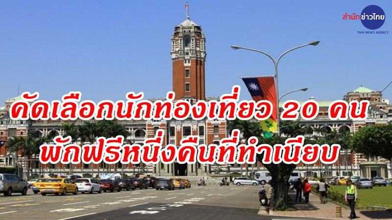 รายงานเผยว่า ทางการไต้หวันจะคัดเลือกนักท่องเที่ยวต่างชาติสูงสุด 20 คน มาพักฟรีหนึ่งคืนที่ทำเนียบประธานาธิบดี สถาปัตยกรรมสไตล์บาโรค อายุเก่าแก่ร่วมร้อยปี ตั้งอยู่บนถนนชงฉิ่งใต้ เขตจงเจิ้ง กรุงไทเป ผู้สมัครจะต้องมีอายุ 20 ปีขึ้นไป ไม่ใช่พลเมืองไต้หวัน ส่งแผนการท่องเที่ยวและคลิปการท่องเที่ยวให้คณะกรรมการตัดสินก่อนสิ้นเดือนนี้เท่านั้น ผู้ได้รับการคัดเลือกจะได้เข้าพักในทำเนียบประธานาธิบดีซึ่งมีห้องพักมากถึง 300 ห้อง ราวเดือนตุลาคมเป็นต้นไป