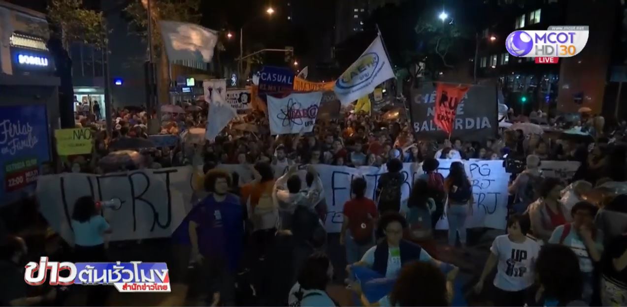บราซิล 14 ส.ค. – ครู อาจารย์ และนักเรียนนักศึกษาหลายพันคน เดินขบวนประท้วงทั่วประเทศบราซิลเมื่อวานนี้ เพื่อคัดค้านการตัดงบใช้จ่ายด้านการศึกษาของรัฐบาลกลาง