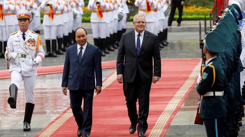 นายมอร์ริสันกล่าวว่า ออสเตรเลียสนับสนุนการปฏิบัติตามกฎหมายระหว่างประเทศ แต่ไม่ได้ระบุชื่อ จีนและไม่เข้าข้างฝ่ายใด ด้านนายกรัฐมนตรีเหวียน ซวน ฟุก ของเวียดนามกล่าวแสดงความวิตกกังวลอย่างยิ่งต่อสถานการณ์ในทะเลจีนใต้ และขอไม่ให้ประเทศเพื่อนบ้านใช้กำลัง.- สำนักข่าวไทย