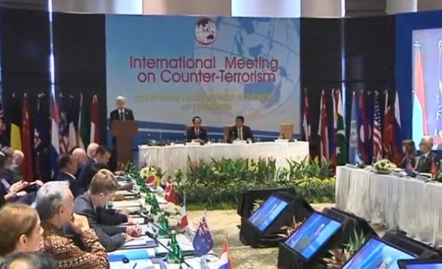 เจ้าหน้าที่จาก 20 ประเทศ รวมถึงตัวแทนจากสหประชาชาติ เข้าร่วมการประชุมระดับรัฐมนตรี ซึ่งจัดขึ้นเป็นเวลา 2 วันที่เกาะบาหลี ของอินโดนีเซีย โดยระหว่างการประชุมมีการพูดถึงแนวทางตอบโต้การโจมตีของกลุ่มก่อการร้ายทั่วโลก นายพลวิรันโต รัฐมนตรีด้านความมั่นคงของอินโดนีเซีย ประธานการประชุมกล่าวว่า เทคโนโลยีไซเบอร์ควรจะถูกนำมาใช้ในการสกัดกั้นเครือข่ายก่อการร้ายที่ใช้ช่องทางอินเทอร์เน็ตในการโฆษณาชวนเชื่อ สรรหาแนวร่วม โจมตีทางไซเบอร์และก่ออาชญากรรมไซเบอร์ เขากล่าวอีกว่า ควรมีการแบ่งปันข้อมูลข่าวกรองและมีการตรวจตราบริเวณชายแดนที่เข้มงวดเพื่อช่วยในการติดตามตัวผู้ก่อการร้ายต่างชาติ รวมทั้งการสกัดกั้นเส้นทางการเงินของกลุ่มก่อการร้ายก็มีความสำคัญเช่นกัน