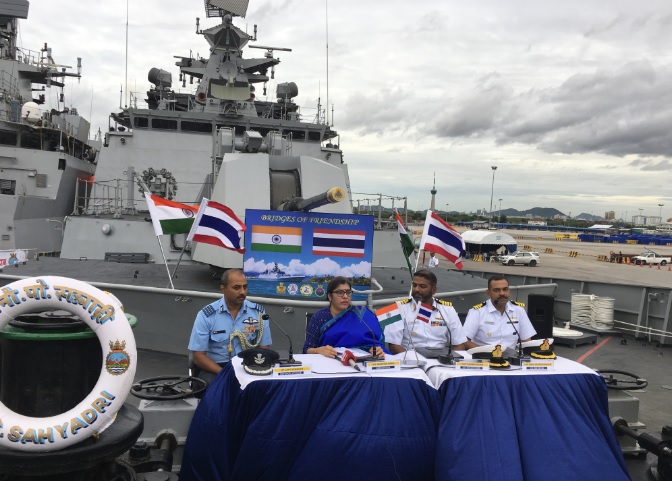 ชลบุรี 4 ก.ย. เรือรบอินเดียสองลำ ‘สยาดรี’ และ ‘กิลตัน’ แวะเทียบท่าที่ท่าเรือแหลมฉบัง จ.ชลบุรี ระหว่างวันที่ 31 ส.ค.- 3 ก.ย. ซึ่งเป็นส่วนหนึ่งของภารกิจการเดินเรือผ่านภูมิภาคเอเชียตะวันออกเฉียงใต้และแปซิฟิกตะวันตก