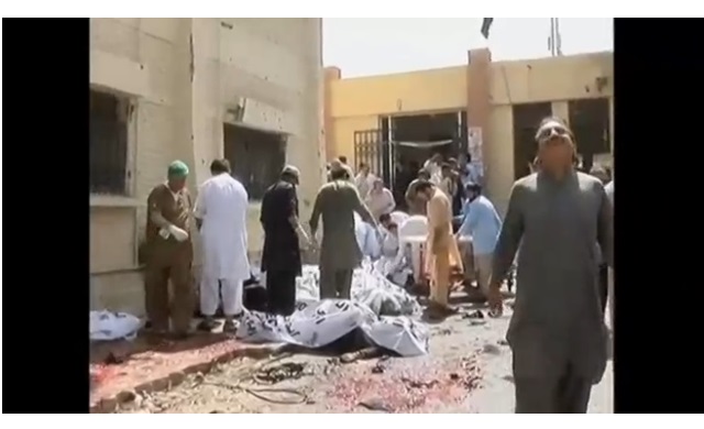 นายกรัฐมนตรีนาวาซ ชารีฟ ของปากีสถานกล่าวเรียกร้องให้กองกำลังด้านความมั่นคงกวาดล้างกลุ่มก่อการร้ายให้หมดสิ้นภายหลังจากที่เกิดเหตุระเบิดที่โรงพยาบาลแห่งหนึ่งในเมืองเควตตา เมืองเอกของแคว้นบาลูจิสถาน ซึ่งทำให้มีผู้ได้รับบาดเจ็บอีกกว่า 100 คน มือระเบิดผู้ก่อเหตุลงมือในขณะที่มีประชาชนประมาณ 200 คน มาร่วมแสดงความอาลัยต่อทนายความชื่อดังที่ถูกยิงเสียชีวิตก่อนหน้านี้ โดยกลุ่มจามัต-อุล-อาห์ราร์ ซึ่งเป็นส่วนหนึ่งของกลุ่มตอลิบาน กล่าวอ้างว่าเป็นผู้ลงมือทั้งการก่อเหตุระเบิดที่โรงพยาบาลและการสังหารทนายความคนดังกล่าว และประกาศจะลงมือก่อเหตุต่อไปจนกว่าจะมีการนำระบบอิสลามเข้ามาใช้ในปากีสถาน และหลังจากนั้นไม่กี่ชั่วโมง กลุ่มไอเอส ก็ออกมาอ้างว่าเป็นผู้ก่อเหตุระเบิดที่โรงพยาบาลและอ้างว่ามีผู้เสียชีวิตถึง 200 คน.-สำนักข่าวไทย