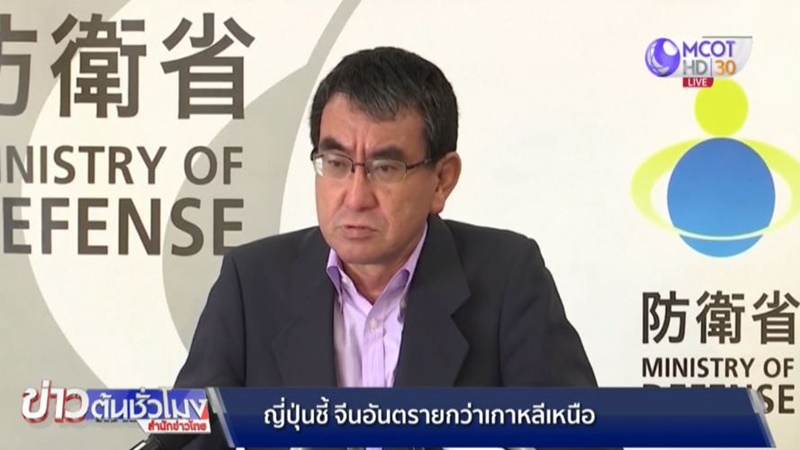 ญี่ปุ่น 27 ก.ย.-นายทาโร โคโนะ รัฐมนตรีกลาโหมญี่ปุ่น ระบุการเสริมสร้างแสนยานุภาพทางทหารของจีนอย่างรวดเร็ว อาจเป็นภัยคุกคามญี่ปุ่นมากกว่าการพัฒนาอาวุธนิวเคลียร์ของเกาหลีเหนือ นอกจากนี้จีนยังเพิ่มการลาดตระเวนทั้งทางอากาศและทางทะเลใกล้กับเกาะโอกินาวา ทางภาคตะวันตกของญี่ปุ่น รวมทั้งทางตะวันตกของมหาสมุทรแปซิฟิก