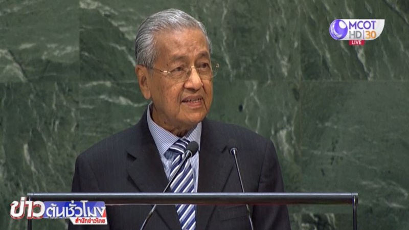 มาเลเซีย 28 ก.ย.-นายกรัฐมนตรีมหาเธร์ โมฮัมหมัด ของมาเลเซีย แถลงที่นครนิวยอร์กว่าไม่เห็นด้วยกับการที่ชาติมหาอำนาจเข้าไปก้าวก่ายในปัญหาระหว่างประเทศ และบอกด้วยว่าไม่เห็นด้วยกับการคว่ำบาตรอิหร่าน แต่มาเลเซียก็จำต้องยอมปฏิบัติตามพันธกรณี เพราะถูกกดดันจากสหรัฐ ผู้นำมาเลเซียยังกล่าวอีกว่าเขาไม่เชื่อมั่นในการทำสงคราม รวมทั้งสงครามการค้า ส่วนการกล่าวสุนทรพจน์ต่อที่ประชุมใหญ่สหประชาชาติ หรือยูเอ็น ผู้นำมาเลเซียกล่าวว่ายูเอ็นล้มเหลวในการป้องกันสงคราม และวิจารณ์ชาติสมาชิกคณะมนตรีความมั่นคงของยูเอ็นที่ให้สิทธิตัวเองในการปกครองโลก.-สำนักข่าวไทย