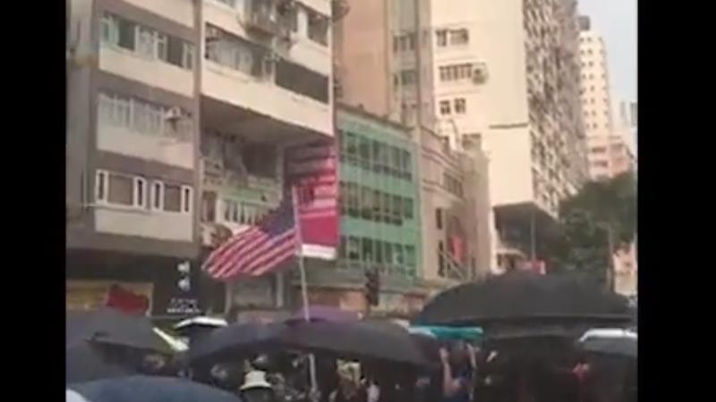 ผู้ประท้วงได้เดินขบวนพร้อมถือธงชาติของต่างชาติ เช่น สหรัฐ และญี่ปุ่น ด้วยความหวังว่าจะสามารถดึงให้ต่างชาติร่วมสนับสนุน โดยที่ในขณะเดียวกันผู้ประท้วงหัวรุนแรงก็ได้ขว้างปาระเบิดขวด เผาธงสัญลักษณ์ 70 ปี การก่อตั้งสาธารณรัฐประชาชนจีน และทุบทำลายตู้ ATM ของธนาคารจีน