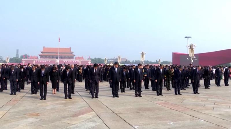 ปักกิ่ง 30 ก.ย.- ประธานาธิบดีสี จิ้นผิงของจีนนำคณะเจ้าหน้าที่ระดับสูงเคารพศพประธานเหมา เจ๋อตุง ที่อนุสรณ์สถานกลางจัตุรัสเทียนอันเหมินในวันนี้ ก่อนถึงวันครบ 70 ปีการก่อตั้งสาธารณรัฐประชาชนจีนในวันที่ 1 ตุลาคมนี้