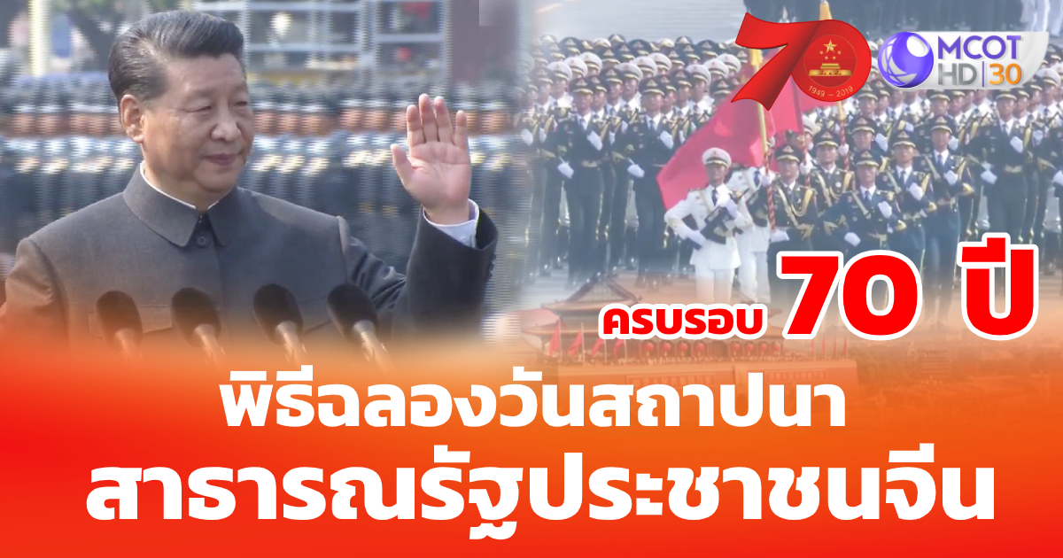 สำนักข่าวไทย 01 ต.ค.-ร่วมเป็นส่วนหนึ่งในประวัติศาสตร์ครั้งสำคัญของโลก กับรายการ “พิธีฉลองวันสถาปนาสาธารณรัฐประชาชนจีน ครบ 70 ปี” ชมภาพฉลองอันยิ่งใหญ่ตระการตา ความเกรียงไกรของกองทัพจีน กลางจัตุรัสเทียนอันเหมิน