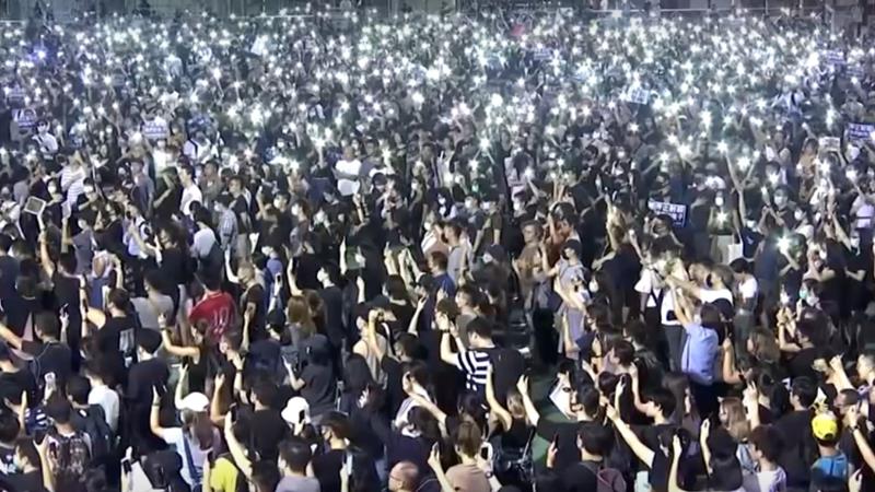 โดยในคืนวันพุธผู้ประท้วงได้รื้ออิฐตัวหนอนเพื่อใช้เป็นเครื่องมือทำลายข้าวของและใช้ต่างอาวุธในการต่อกรกับเจ้าหน้าที่ ปิดถนน และขว้างปาระเบิดเพลิง รวมถึงวางเพลิงเป็นจุด รวมทั้งเข้าทุบทำลายทรัพย์สินตามสถานีรถไฟฟ้า และห้างร้านที่มีความเกี่ยวข้องกับจีนแผ่นดินใหญ่