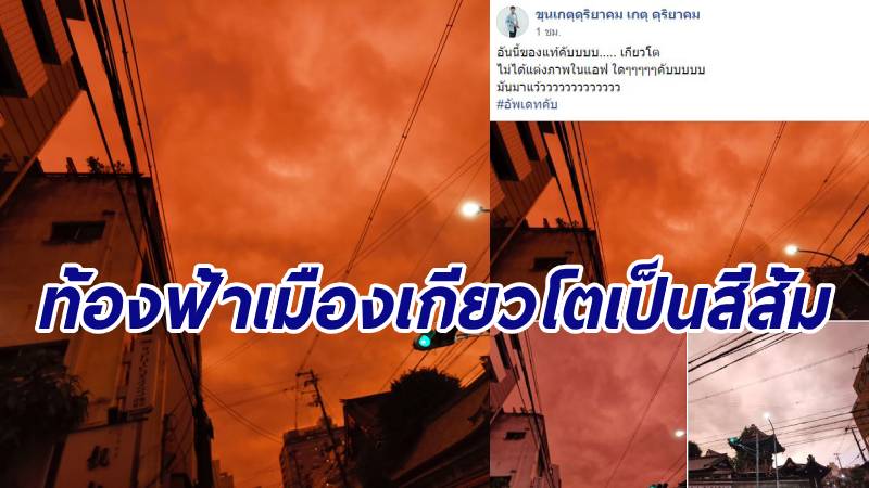 เปิดภาพท้องฟ้าเมืองเกียวโตเป็นสีส้ม โดยผู้ใช้เฟซบุ๊ก ขุนเกตุดุริยาคม เกตุ ดุริยาคม ได้โพสต์ข้อความว่า “อันนี้ของแท้ครับ เกียวโต​ไม่ได้แต่งภาพในแอป​ ใดๆครับมันมาแล้ว #อัปเดตครับ” #PrayForJapan