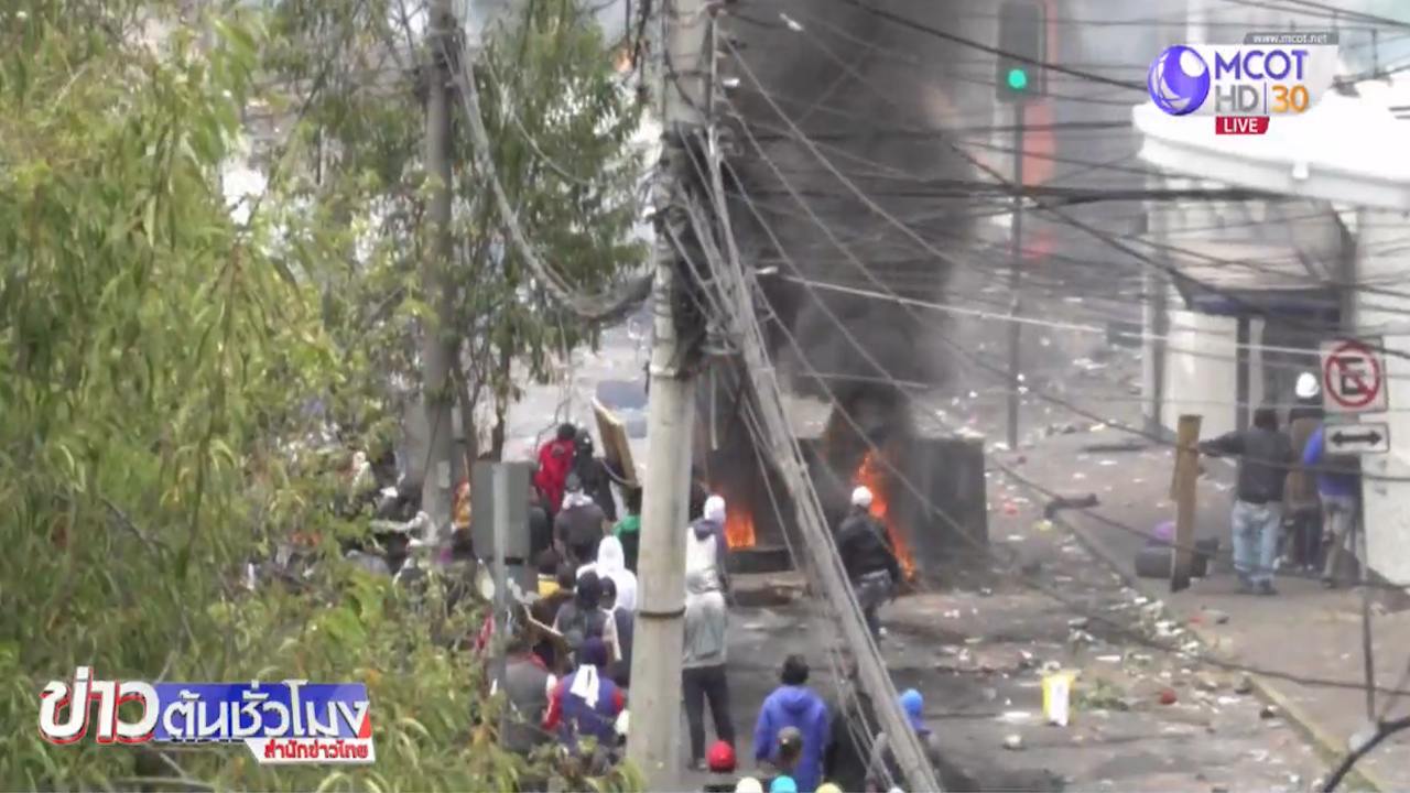 รัฐบาลเอกวาดอร์ได้ประกาศเคอร์ฟิวในกรุงกีโตเมื่อวานนี้หลังเกิดการประท้วงรัฐบาลและก่อจลาจลรุนแรงมานานถึง 10 วัน ประธานาธิบดีเลนิน โมเรโน ได้สั่งทหารเข้าควบคุมพื้นที่โดยรอบกรุงกีโตเพื่อยุติการชุมนุมประท้วงที่เต็มไปด้วยความรุนแรง ก่อนมีการประกาศเคอร์ฟิวนั้น ย่านการค้าสำคัญของกรุงกีโตกลายเป็นสมรภูมิระหว่างผู้ประท้วงกับตำรวจปราบจลาจล มีการขว้างปาก้อนหินและสิ่งของต่างๆ ใส่เจ้าหน้าที่ และจุดไฟเผาอาคารหลายแห่ง ขณะที่เจ้าหน้าที่ตอบโต้ด้วยการยิงแก๊สน้ำตา รายงานแจ้งว่าการปะทะกันระหว่างตำรวจกับผู้ประท้วงที่เริ่มมาตั้งแต่วันที่ 3 ตุลาคมนั้น ทำให้มีผู้เสียชีวิตไปแล้ว 5 คน บาดเจ็บราว 1,000 คน และถูกจับกุมดำเนินคดี 1,100 คน .- สำนักข่าวไทย