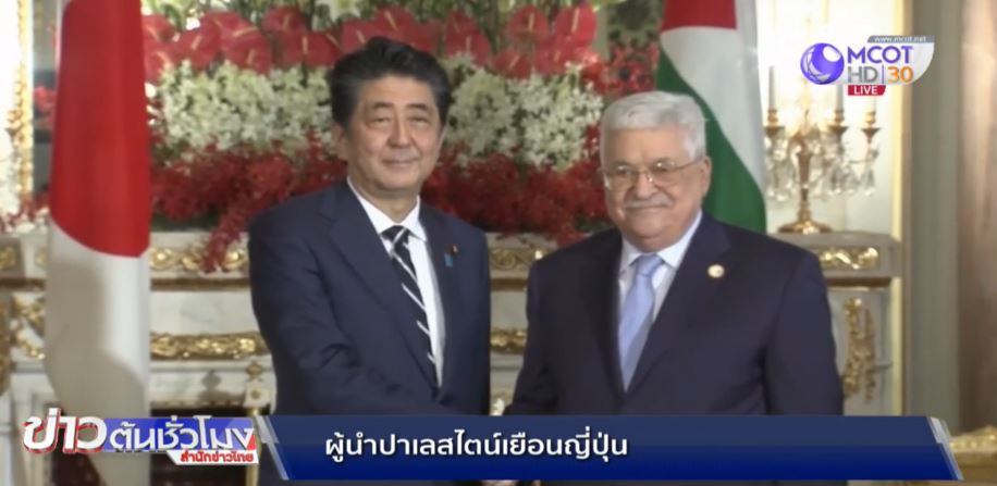 ญี่ปุ่น 21 ต.ค.-ผู้นำปาเลสไตน์เยือนญี่ปุ่น พบหารือกับนายกรัฐมนตรีชินโซ อาเบะ และจะเข้าร่วมพระราชพิธีเฉลิมฉลองการขึ้นครองราชย์ของสมเด็จพระจักรพรรดินารูฮิโตะ วันพรุ่งนี้