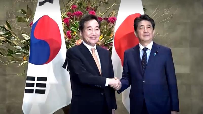 ความสัมพันธ์ระหว่างญี่ปุ่นและเกาหลีใต้เป็นไปอย่างเย็นชา หลังศาลฎีกาเกาหลีใต้มีคำสั่งเมื่อเดือนตุลาคมปีที่แล้ว ให้บริษัทญี่ปุ่นหลายบริษัทจ่ายเงินชดเชยแก่ชาวเกาหลีกรณีบังคับใช้แรงงานทาสสมัยสงคราม ขณะที่ญี่ปุ่นยืนกรานว่าเรื่องการจ่ายค่าชดเชยทุกกรณีได้กระทำเสร็จไปหมดแล้วตามสนธิสัญญาปี 2508 และการเรียกร้องเพิ่มเติม รวมถึงคำสั่งศาลที่ให้ชดใช้เพิ่มเติมถือเป็นการละเมิดกฎหมายระหว่างประเทศ