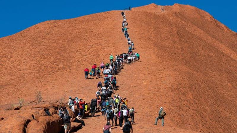 ดาร์วิน 25 ต.ค.- นักท่องเที่ยวจำนวนมากแห่ปีนอูลูรู ก้อนหินศักดิ์สิทธิขนาดใหญ่ในเขตนอร์เทิร์นเทร์ริทอรี ทางตอนกลางค่อนไปทางเหนือของออสเตรเลียในวันนี้ ก่อนถูกห้ามปีนขึ้นอย่างถาวรตั้งแต่วันเสาร์นี้