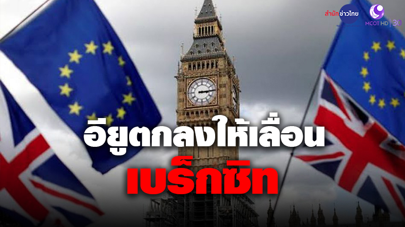 บรัสเซลส์ 28 ต.ค. – สหภาพยุโรป หรือ อียู ตกลงขยายเวลาเส้นตายที่อังกฤษจะออกจากการเป็นสมาชิกอียู หรือ เบร็กซิทออกไปอีก 3 เดือนโดยให้ยืดหยุ่นได้จนถึงวันที่ 31 มกราคมปีหน้า