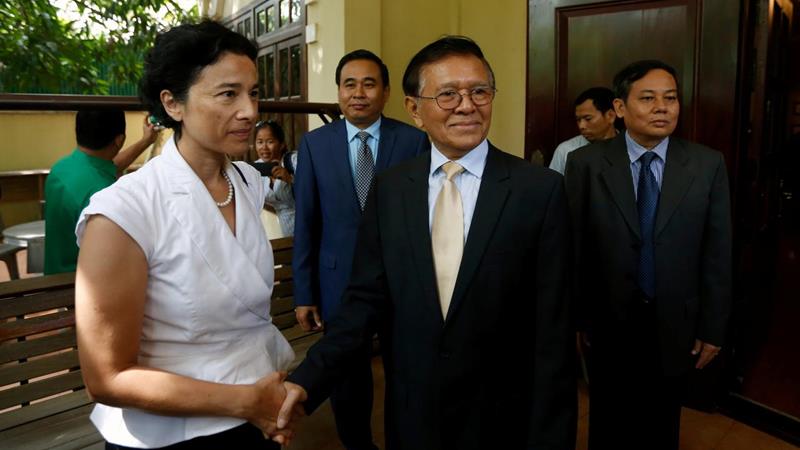 พนมเปญ 11 พ.ย.- นางเอวา เหวียนบินห์ เอกอัครราชทูตฝรั่งเศสประจำกัมพูชาไปเยี่ยมนายกึม ซกคา หัวหน้าพรรคฝ่ายค้านกัมพูชาที่ถูกยุบพรรคไปแล้ว หลังจากทางการกัมพูชายกเลิกคำสั่งกักบริเวณนายกึม ซกคาให้อยู่แต่ในบ้านพัก แต่ยังคงถูกตั้งข้อหาเป็นกบฏ ห้ามเล่นการเมืองและห้ามออกนอกประเทศ