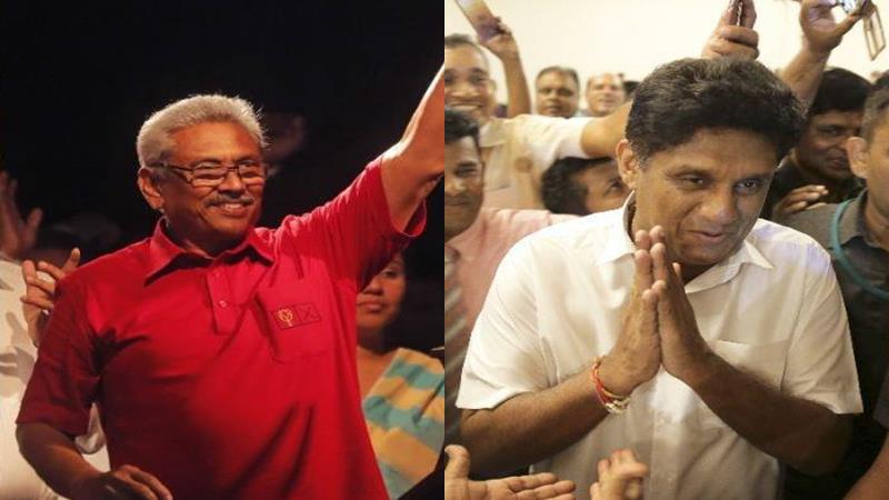 นักการเมืองและนักวิเคราะห์ระบุว่า ตัวเก็งสองคนที่ขับเคี่ยวกันอย่างสูสีคือนายโกตาบายา ราชปักษา วัย 70 ปี อดีตรัฐมนตรีกลาโหมที่คุมกองทัพปราบกลุ่มพยัคฆ์ทมิฬอีลัมเมื่อสิบกว่าปีก่อน กับนายซาจิท เพรมาดาษา วัย 52 ปี รัฐมนตรีการเคหะและการวัฒนธรรม นายราชปักษาประกาศจะยกเครื่องการรักษาความมั่นคงประเทศ เพราะรู้ว่าชาวสิงหลที่เป็นชาวพุทธและเป็นคนส่วนใหญ่ของประเทศยังคงหวาดกลัวจากเหตุระเบิดวันอีสเตอร์เมื่อเดือนเมษายนที่มีผู้เสียชีวิตมากกว่า 250 คน และกลุ่มรัฐอิสลามหรือไอเอส (IS) อ้างว่าเป็นคนทำ ขณะที่นายเพรมาดาษาหาเสียงกับคนต่างจังหวัดและผู้หญิงด้วยการชูเรื่องแจกบ้าน ชุดนักเรียน และผ้าอนามัย