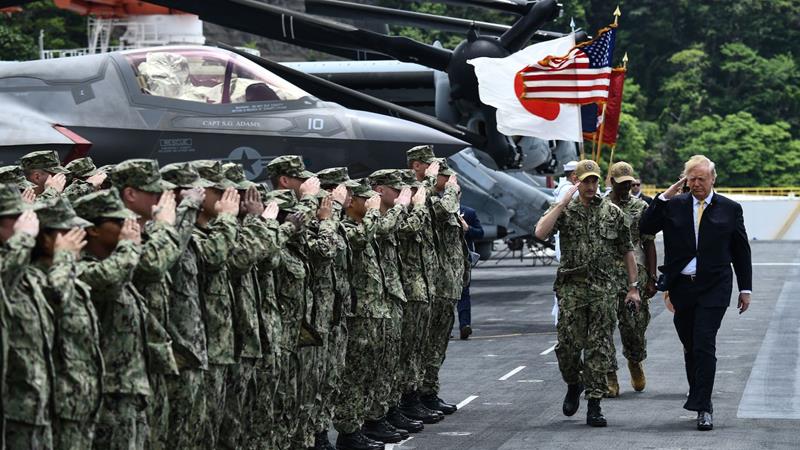 ฟอเรนโพลิซีรายงานว่า รัฐบาลสหรัฐต้องการให้รัฐบาลญี่ปุ่นเพิ่มค่าใช้จ่ายดูแลทหารอเมริกันในญี่ปุ่นจำนวน 54,000 นายจากปีละ 2,000 ล้านดอลลาร์สหรัฐ (ราว 60,543 ล้านบาท) เป็น 8,000 ล้านดอลลาร์สหรัฐ (ราว 242,174 ล้านบาท) ส่วนข้อตกลงปัจจุบันจะหมดอายุในเดือนมีนาคม 2564 สหรัฐเรียกร้องดังกล่าวในช่วงที่นายจอห์น โบลตัน ที่ปรึกษาความมั่นคงแห่งชาติของทรัมป์ในขณะนั้นและนายแมทธิว พอตทิงเกอร์ ผู้อำนวยการเอเชีย สภาความมั่นคงแห่งชาติสหรัฐในขณะนั้นเยือนญี่ปุ่นเมื่อเดือนกรกฎาคม โฆษกกระทรวงต่างประเทศญี่ปุ่นแถลงปฏิเสธว่า รายงานดังกล่าวไม่ถูกต้อง และยังไม่มีการเจรจาเรื่องข้อตกลงใหม่แต่อย่างใด