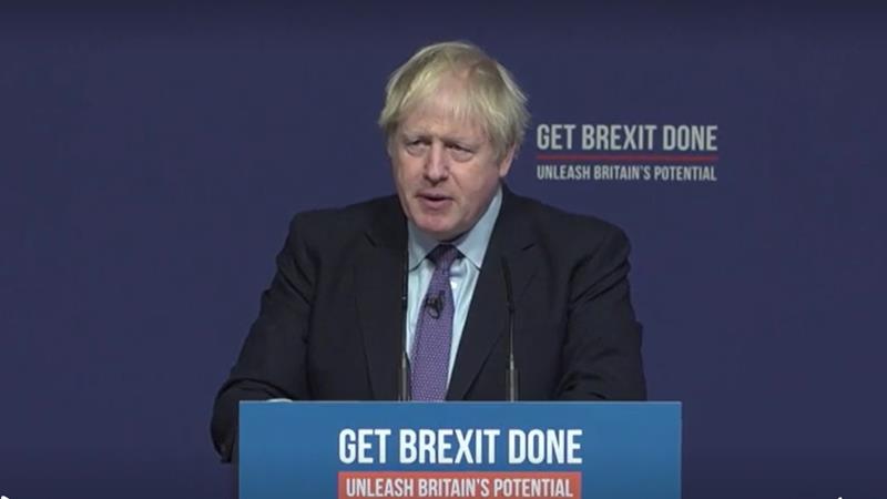 ในการหาเสียงเมื่อวันอาทิตย์ นายกรัฐมนตรีจอห์นสันได้ประกาศนโยบายหลักของพรรคอนุรักษ์นิยมในการเลือกตั้งวันที่ 12 ธันวาคม ด้วยการให้สัญญาว่า จะเสนอข้อตกลงในการถอนตัวออกจากสหภาพยุโรปต่อสภาก่อนวันคริสต์มาส และจะถอนตัวออกจากสหภาพยุโรปภายในวันที่ 31 มกราคม ปี 2563 แต่ทั้งนี้หากต้องมีการขยายระยะเวลาออกไป ก็จะไม่ให้กระบวนการทั้งหมดล่วงเลยไปเกินเดือนธันวาคม ปี 2563