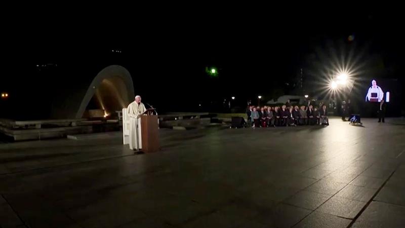 สมเด็จพระสันตะปาปาทรงพบกับผู้รอดชีวิตจากเหตุแผ่นดินไหว สึนามิ และอุบัติโรงไฟฟ้านิวเคลียร์ฟูกุชิมะที่เกิดขึ้นในวันเดียวกันเมื่อวันที่ 11 มีนาคม ระหว่างเสด็จเยือนกรุงโตเกียวในวันนี้ ทรงชื่นชมผู้รีบรุดให้ความช่วยเหลือ ผู้สวดภาวนา ผู้ให้ความช่วยเหลือทางการเงินและสิ่งของต่าง ๆ แก่ผู้ประสบภัย และขอให้สานต่อสิ่งเหล่านี้ต่อไป อย่าปล่อยให้เลือนหายไปกับกาลเวลาหรือหลังจากความตกใจในตอนต้นผ่านพ้นไปแล้ว อย่างไรก็ดี พระองค์ทรงเลี่ยงที่จะแทรกแซงข้อถกเถียงเรื่องโรงไฟฟ้านิวเคลียร์ในญี่ปุ่นด้วยการตรัสเพียงว่า คณะบิชอบในญี่ปุ่นได้ย้ำถึงความเป็นห่วงที่ญี่ปุ่นยังใช้โรงไฟฟ้าแบบนี้และได้เรียกร้องให้เลิกใช้ตามที่สภาประมุขบาทหลวงโรมันคาทอลิกแห่งญี่ปุ่นแถลงเมื่อปี 2559