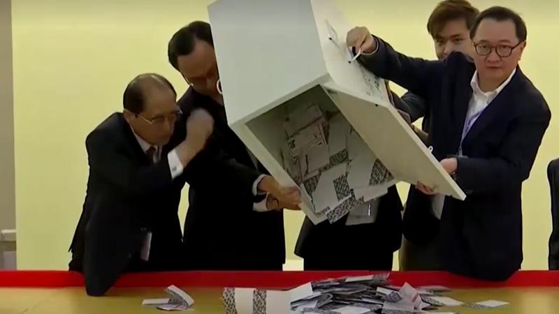 เซาท์ไชนามอร์นิงโพสต์ระบุด้วยว่า เมื่อเริ่มนับคะแนนหลังคูหาเลือกตั้งปิดในเวลา 22.30 น.วานนี้ แผนที่สีในสภาเทศบาลเริ่มเห็นอย่างชัดเจนว่ามีการเปลี่ยนจากสีฟ้าที่ฝ่ายสนับสนุนทางการครอง 292 ที่นั่งในการเลือกตั้งครั้งหลังสุดในปี 2558 ไปเป็นสีเหลืองของฝ่ายสนับสนุนประชาธิปไตย