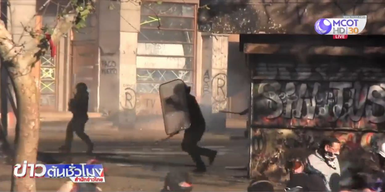 การชุมนุมประท้วงในชิลีที่ยืดเยื้อมากว่า 1 เดือนยังไม่มีทีท่าว่าจะยุติ ที่กรุงซานเตียโก ตำรวจต้องยิงแก๊สน้ำตาเพื่อขับไล่กลุ่มผู้ประท้วงที่ออกมาเรียกร้องให้รัฐบาลปรับปรุงคุณภาพชีวิตของประชาชน ขึ้นค่าแรง และปรับปรุงระบบการศึกษา