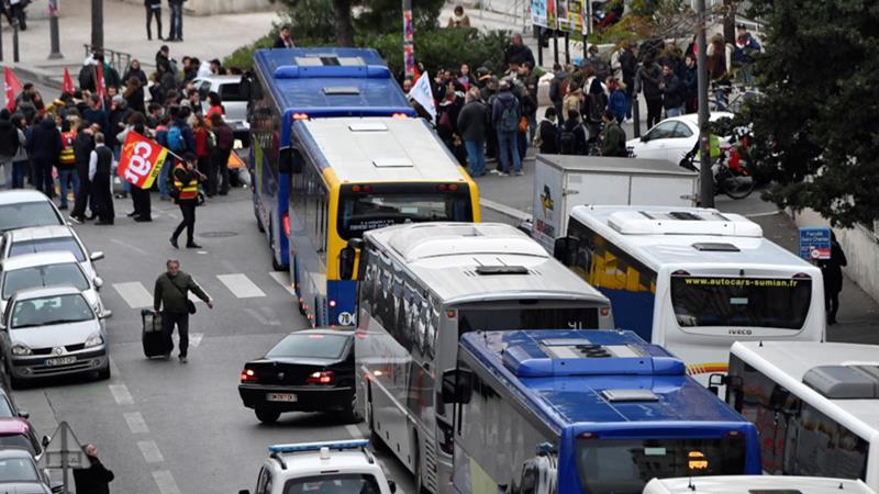 คนทำงานในฝรั่งเศสต้องทำงานที่บ้านหรือลางานเพราะไม่สามารถเดินทางได้ รถไฟความเร็วสูงเตเชเวและรถไฟภูมิภาคยกเลิกถึงร้อยละ 90 สายการบินแอร์ฟรานซ์ลดเที่ยวบินในประเทศร้อยละ 30 และเที่ยวบินต่างประเทศระยะสั้นร้อยละ 15 เฉพาะกรุงปารีสรถไฟฟ้าใต้ดินปิดถึง 11 สายจากทั้งหมด 16 สาย หอไอเอฟ แหล่งท่องเที่ยวชื่อดังต้องปิดให้บริการเพราะเหลือพนักงานไม่กี่คน แกนนำสหภาพแรงงานประกาศจะผละงานไปจนว่าประธานาธิบดีล้มแผนการปฏิรูประบบบำนาญ และว่ากระบวนการเจรจาทางสังคมตามที่ประธานาธิบดีบอกว่ามีความสำคัญกลับไม่เกิดขึ้นจริง สหภาพแรงงานคาดว่าจะได้เสียงสนับสนุนอย่างกว้างขวางทั้งจากคนทำงานภาครัฐและเอกชน