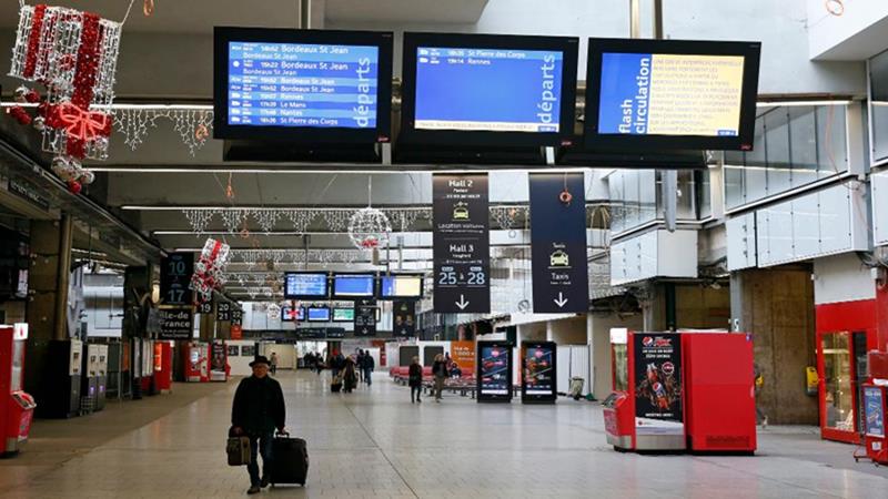 ปารีส 6 ธ.ค.- สหภาพแรงงานฝรั่งเศส ซึ่งเป็นตัวแทนพนักงานรถไฟ ครู และคนงานในอุตสาหกรรมอื่น ๆ ประท้วงแผนปฏิรูปบำนาญของรัฐบาล เนื่องจากเกรงว่าแผนปฏิรูปดังกล่าว จะทำให้บำนาญลดลง การประท้วงส่งผลให้ทั้งประเทศเป็นอัมพาต