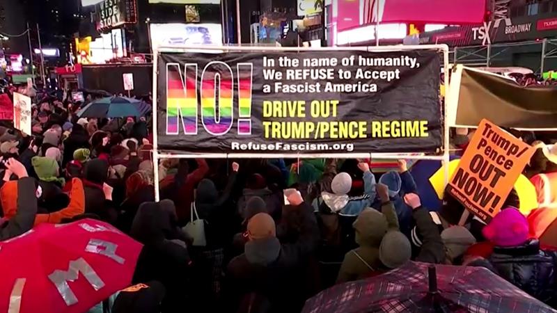 นิวยอร์ก 18 ธ.ค. – ชาวนครนิวยอร์กนับพันเดินขบวนในย่านแมนฮัตตันในคืนวันอังคาร เพื่อแสดงพลังสนับสนุนกระบวนการถอดถอนและปลดประธานาธิบดีโดนัลด์ ทรัมป์ ออกจากตำแหน่ง ก่อนหน้าที่สภาผู้แทนราษฎรจะลงมติในวันพุธ โดยผู้จัดระบุว่า การเดินขบวนดังกล่าวเป็นส่วนหนึ่งของกิจกรรม 600 กิจกรรมที่จัดขึ้นทั่วสหรัฐ เพื่อแสดงพลังสนับสนุนการถอดถอนทรัมป์