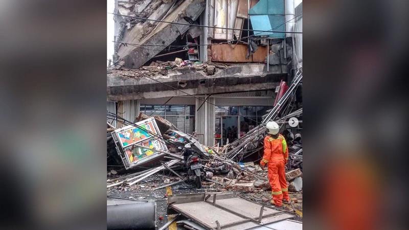 อาคารแห่งนี้ตั้งอยู่ทางฝั่งตะวันตก เป็นอาคารพาณิชย์ที่ใช้ทั้งพักอาศัยและทำการค้า ด้านล่างเป็นร้านสะดวกซื้อ ด้านบนมีร้านค้าเช่าร้านเล็ก ๆ ขณะนี้ยังไม่ทราบว่ามีผู้เสียชีวิตหรือไม่ และยังไม่ชัดเจนว่าเป็นผลจากน้ำท่วมหนักในกรุงจาการ์ตาและปริมณฑลเมื่อสัปดาห์ก่อนที่มีผู้เสียชีวิตกว่า 60 คนหรือไม่ หลังจากฝนตกหนักในคืนส่งท้ายเก่าต่อเนื่องจนถึงวันขึ้นปีใหม่ ภาพข่าวทางโทรทัศน์เห็นอาคารพังไปครึ่งหนึ่ง มีเศษคอนกรีตและเศษต่าง ๆ เกลื่อนบนถนน เจ้าหน้าที่กู้ภัยใช้เปลหามลำเลียงผู้บาดเจ็บออกจากที่เกิดเหตุ.- สำนักข่าวไทย