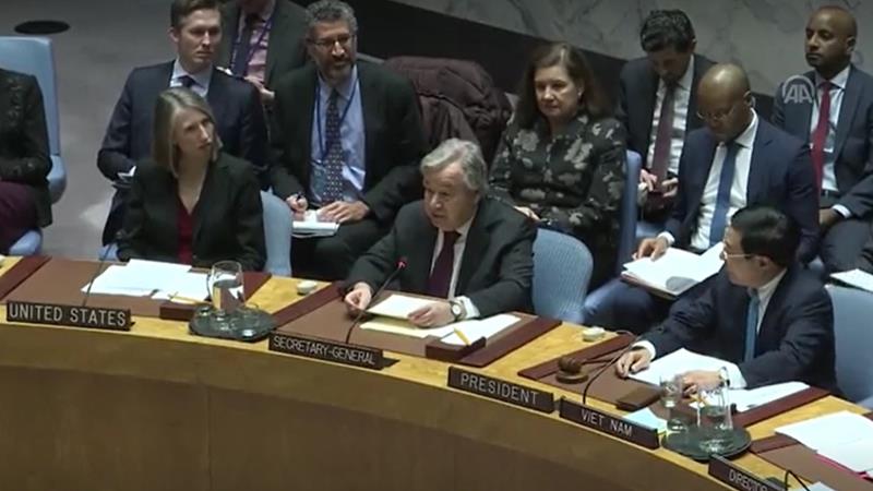 นายอันโตนิโอ กูเตร์เรส เลขาธิการสหประชาชาติได้เปิดการอภิปรายเรียกร้องให้ใช้ความพยายามทางการทูต โดยกล่าวว่า สงครามเป็นสิ่งที่สามารถหลีกเลี่ยงได้ และว่า สันติภาพจะต้องไม่ถูกพรากไป ขณะที่ผู้เข้าร่วมประชุมเรียกร้องให้สหรัฐและอิหร่าน หาทางออกด้วยการเจรจา ไม่ใช่การใช้กำลัง