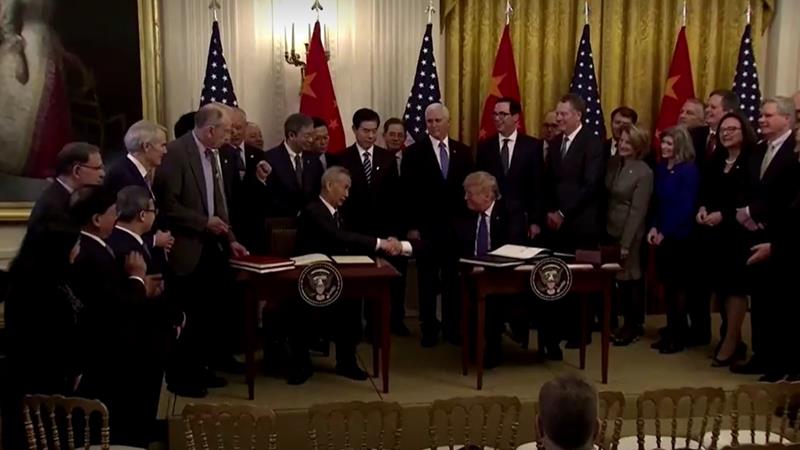 เซาท์ไชนามอร์นิงโพสต์ตั้งข้อสังเกตว่า สถานีโทรทัศน์ของทางการจีนอย่างซีซีทีวี (CCTV) และซีทีจีเอ็น (CTGN) ที่เป็นภาษาอังกฤษถ่ายทอดสดพิธีลงนามข้อตกลงระหว่างรองนายกรัฐมนตรีหลิว เฮ่อของจีนกับประธานาธิบดีโดนัลด์ ทรัมป์ของสหรัฐที่ห้องฝั่งตะวันออกของทำเนียบขาวหลังเที่ยงคืนตามเวลาจีน แต่ได้หยุดการแปลสดเมื่อรองประธานาธิบดีไมค์ เพนซ์ของสหรัฐที่มักวิจารณ์จีนขึ้นพูด และไม่รายงานเนื้อหาจดหมายที่ประธานาธิบดีสี จิ้นผิงส่งถึงประธานาธิบดีทรัมป์ โดยให้นายหลิวเป็นผู้อ่าน