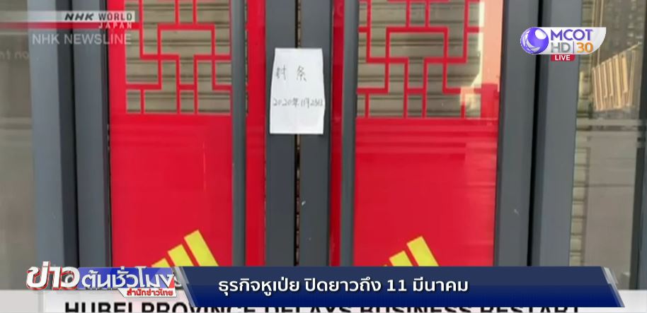 รัฐบาลท้องถิ่นมณฑลหูเป่ย์ของจีน ซึ่งเป็นจุดศูนย์กลางการแพร่ระบาดเชื้อไวรัสโคโรนาสายพันธุ์ใหม่ 2019 จะขยายเวลาการปิดธุรกิจต่างๆ ในหูเป่ย์ออกไปจนถึงวันที่ 11 มีนาคม โดยก่อนหน้านี้เพิ่งประกาศว่าจะอนุญาตให้บริษัทต่างๆ ที่เกี่ยวข้องกับอุตสาหกรรมยาและพลังงาน กลับมาทำธุรกิจและเดินเครื่องการผลิตได้อีกครั้งในวันนี้